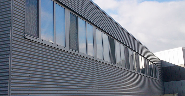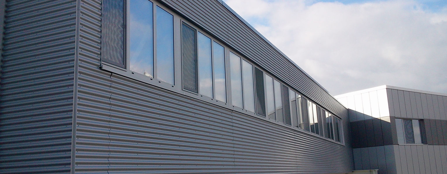 In Zusammenarbeit mit der Bertold Walter GmbH haben wir dieses interessante Projekt bei der Wilhelm Brandenburg GmbH & Co. oHG in Frankfurt am Main realisiert. Die hinterlüftete Fassade besteht aus Aluwellprofilen sowie aus – in unserem Haus – gekanteten und pulverbeschichteten Alukassetten.