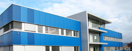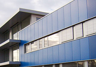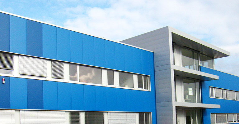 Montage einer Fassadenverkleidung für ein kombiniertes Büro und Produktionsgebäude in Heddesheim bei Mannheim. Die Verkleidung wurde mit Thermowandelementen realisiert. Auf Wunsch wurde die Farbgestaltung im NCS Farbensystem vorgenommen, wodurch sich das Gebäude perfekt in die Umgebungslandschaft integriert.